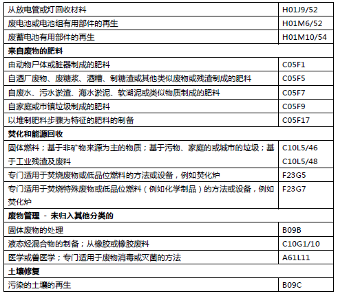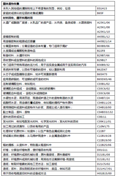 表1 固廢領(lǐng)域的IPC分類