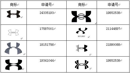 經(jīng)檢索,筆者也查詢到的確有不少商標申請人在第25類模仿第三人的標識申請注冊(如下表所示),但訴爭商標“ ”整體由5個六邊形線段構(gòu)成,大小一致,并未包含任何“U”、“A”字母、中部鏤空、線條粗細變化等引證商標的核心設(shè)計元素,亦未在引證商標的基礎(chǔ)上進行陰影變化、大小比例調(diào)整、上下左右錯位和移位、顏色填充、部位截取等設(shè)計變化,因此亦不存在抄襲或惡意模仿之情形。