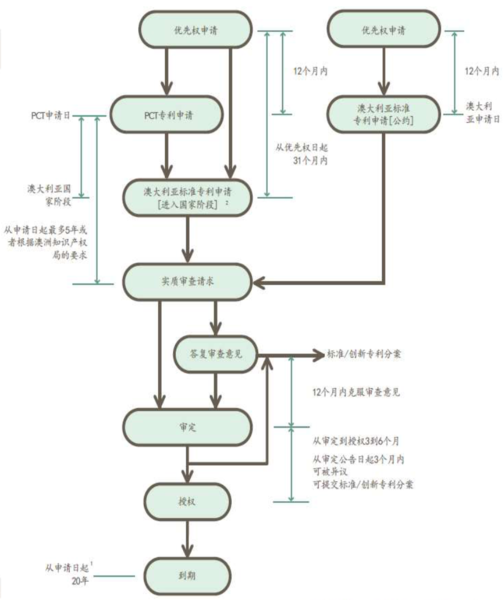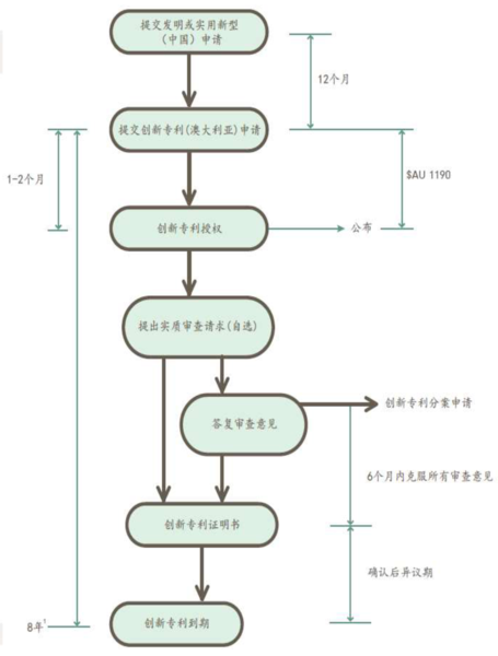 標(biāo)準(zhǔn)專利:可以通過PCT/CP提交澳大利亞標(biāo)準(zhǔn)專利新申請(qǐng),并在5年內(nèi)提出實(shí)質(zhì)審查(PCT從PCT國(guó)際申請(qǐng)日起算,CP從澳大利亞申請(qǐng)日起算)。在收到第一次審查意見后12個(gè)月內(nèi)克服所有缺陷,克服缺陷后進(jìn)入審定,審定后3-6個(gè)月授權(quán)。標(biāo)準(zhǔn)專利保護(hù)期限是20年(藥物、藥品專利保護(hù)期限為25年)。