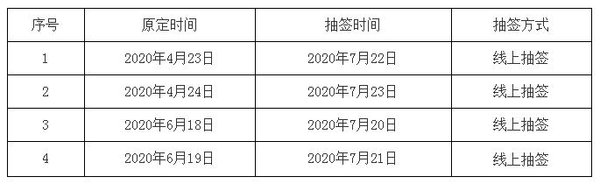 受新冠肺炎疫情影響,國(guó)家知識(shí)產(chǎn)權(quán)局商標(biāo)局決定延期舉行商標(biāo)注冊(cè)同日申請(qǐng)抽簽,并將抽簽方式由線(xiàn)下抽簽變更為線(xiàn)上抽簽,具體時(shí)間安排如下: