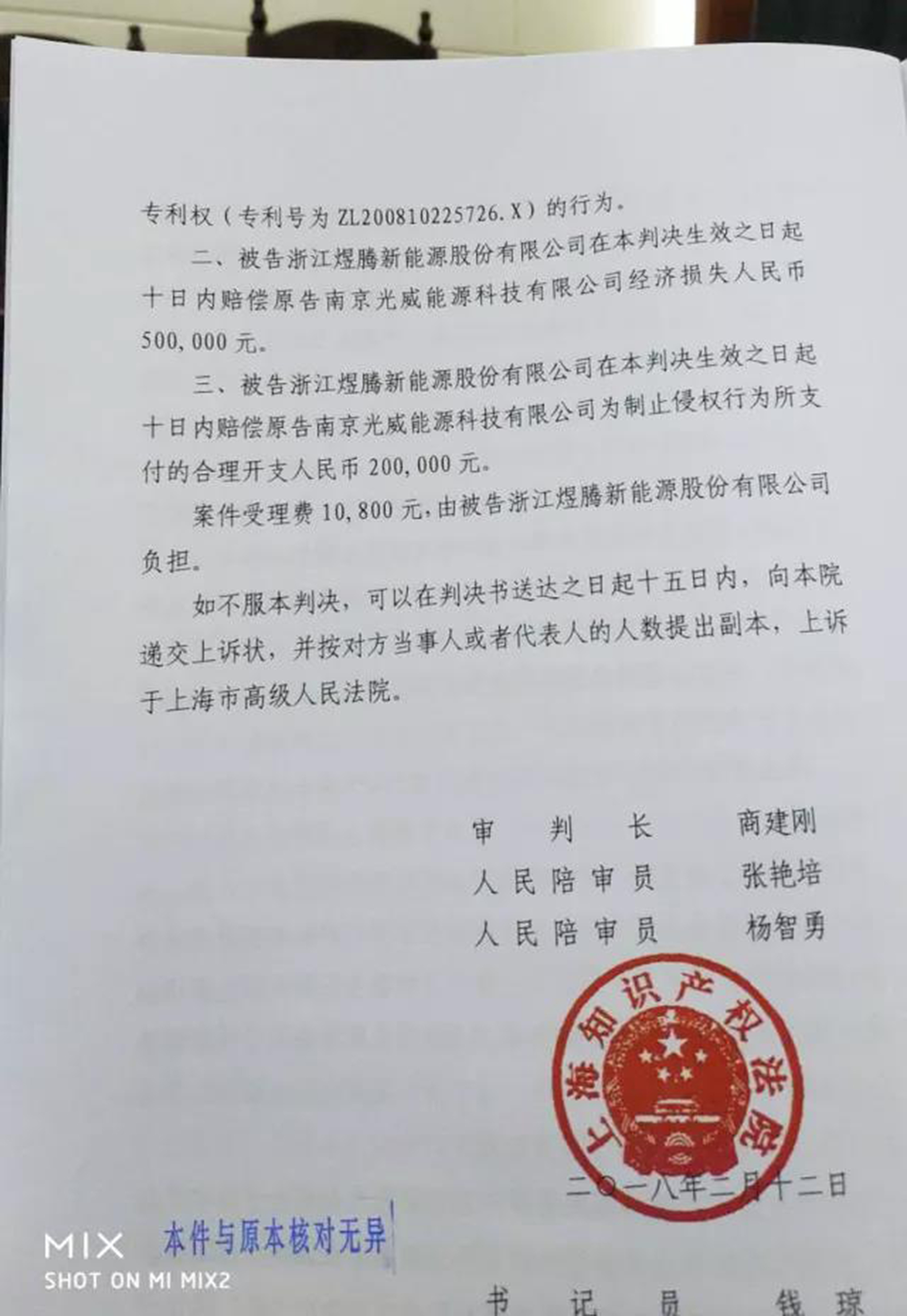 集佳代理南京光威能源科技有限公司(以下簡稱“光威公司”)訴浙江煜騰新能源股份有限公司(以下簡稱“煜騰公司”)侵害發(fā)明專利權(quán)糾紛一案,經(jīng)上海知識產(chǎn)權(quán)法院一審查明事實后,于2018年2月12日宣判:被告煜騰公司制造、銷售、許諾銷售的被控“板式太陽能集熱器產(chǎn)品”落入涉案專利權(quán)的保護(hù)范圍,被告在判決生效之日起停止侵害涉案發(fā)明專利權(quán)的行為,并全額支持了原告主張的侵權(quán)損害賠償及合理開支。