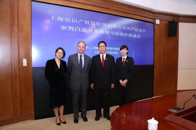 4月20日,上海知識(shí)產(chǎn)權(quán)法院與中國(guó)(上海)自由貿(mào)易試驗(yàn)區(qū)管委會(huì)聯(lián)合召開涉自貿(mào)區(qū)知識(shí)產(chǎn)權(quán)案件審判白皮書發(fā)布暨司法保護(hù)座談會(huì)。上海市高級(jí)人民法院副院長(zhǎng)張斌、浦東新區(qū)副區(qū)長(zhǎng)王靖、上海知識(shí)產(chǎn)權(quán)法院院長(zhǎng)王秋良、浦東新區(qū)知識(shí)產(chǎn)權(quán)局局長(zhǎng)林本初出席,集佳侯玉靜律師、黃鶯律師陪同拉菲羅斯柴爾德集團(tuán)CEO Prats先生、中國(guó)市場(chǎng)部經(jīng)理宋萍經(jīng)理參加,與來自十余家知名企業(yè)的代表、權(quán)威媒體共同見證了白皮書的發(fā)布,并應(yīng)邀出席司法保護(hù)座談會(huì)。