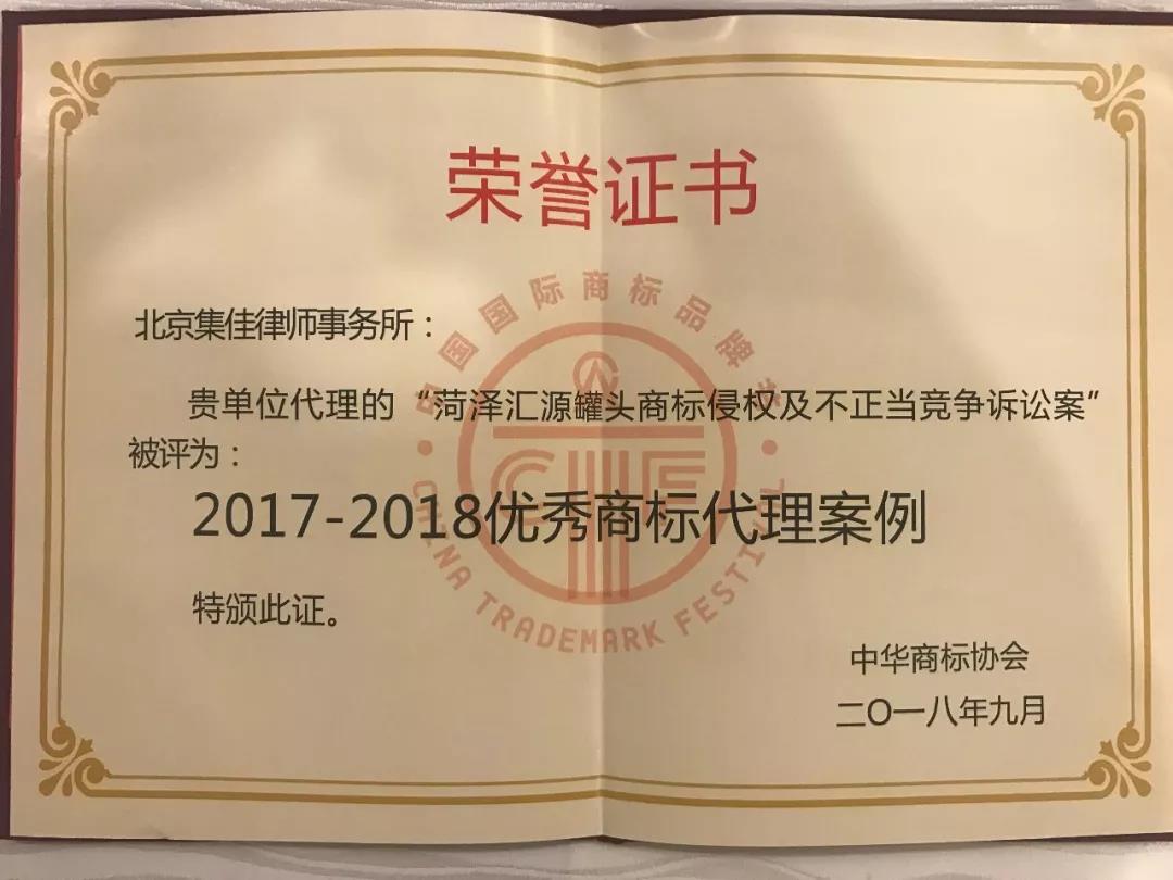 集佳代理北京匯源公司,在商標(biāo)民事侵權(quán)訴訟、商標(biāo)無(wú)效宣告、商標(biāo)撤銷(xiāo)等多條戰(zhàn)線發(fā)力并取得勝訴,全面壓制了菏澤匯源罐頭的各項(xiàng)抗辯意見(jiàn),維護(hù)了客戶的合法權(quán)益。該案件還入選了“最高院2017年50件典型知識(shí)產(chǎn)權(quán)案例”。