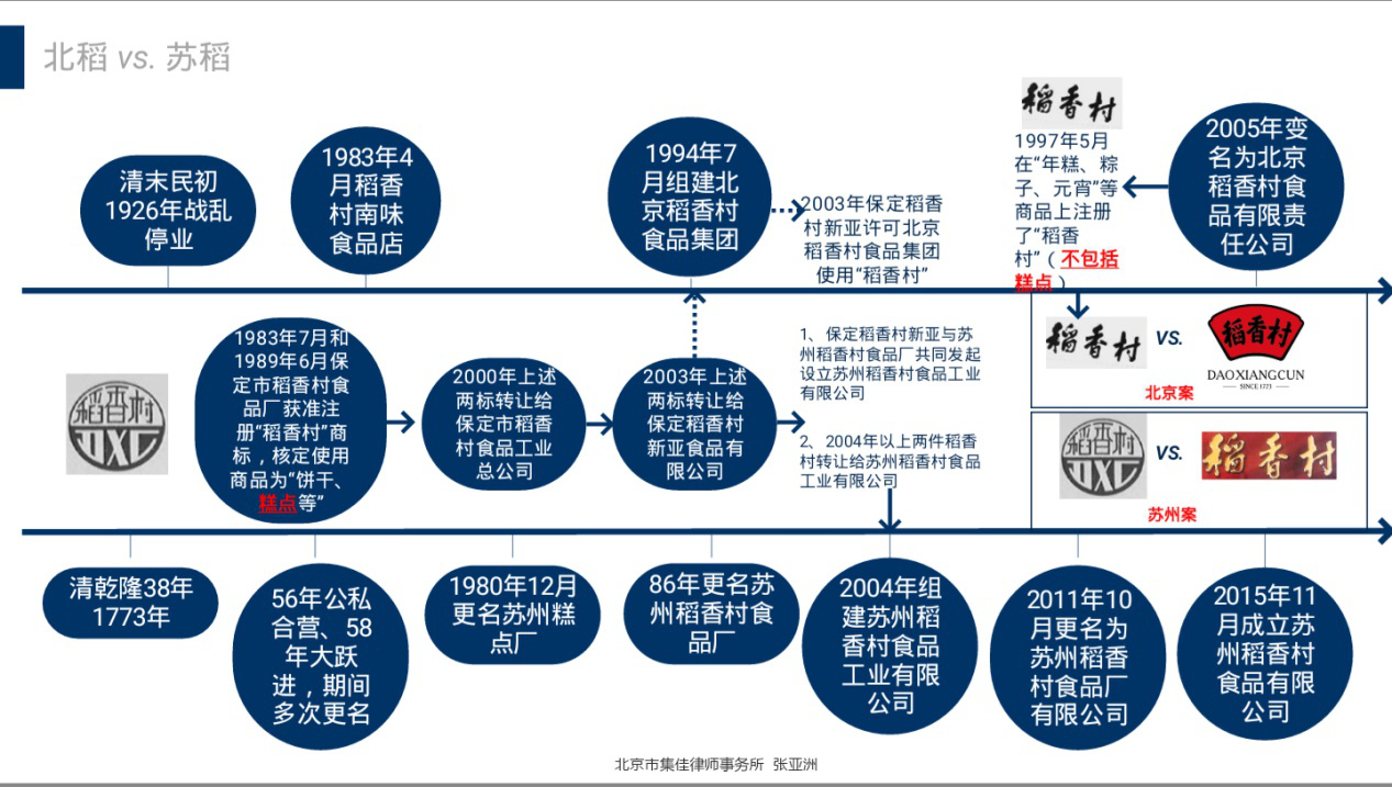 10月12日,蘇州稻香村在一審中獲得勝訴,北京稻香村被判停止在糕點類商品上使用“稻香村”標識,并賠償蘇稻115萬元。而就在一個月前的9月10日,北京知識產(chǎn)權法院判決,北京蘇稻公司、蘇州稻香村公司停止在“粽子、月餅、糕點”等商品上使用“稻香村”商標,賠償原告北京稻香村公司經(jīng)濟損失及合理費用3000萬元。為何北京、蘇州兩個法院判決”相反“?北京稻香村和蘇州稻香村真有“冒牌貨”?十多年的商標戰(zhàn),誰勝誰負?北京時間獨家邀請知識產(chǎn)權方面知名律師張亞洲,詳解南北稻香村商標戰(zhàn)。