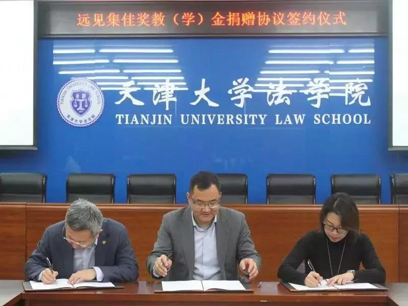 2018年12月29日,“天津大學(xué)法學(xué)院遠(yuǎn)見(jiàn)集佳獎(jiǎng)教(學(xué))金”捐贈(zèng)協(xié)議簽訂儀式在津舉行。中關(guān)村遠(yuǎn)見(jiàn)知識(shí)產(chǎn)權(quán)創(chuàng)新研究院理事長(zhǎng)高巍,北京市集佳律師事務(wù)所主任李永波律師,天津大學(xué)校友與基金事務(wù)處處長(zhǎng)潘峰、任杰老師和天津大學(xué)法學(xué)院院長(zhǎng)孫佑海,副書(shū)記、副院長(zhǎng)李明,郭貴雨老師等出席。