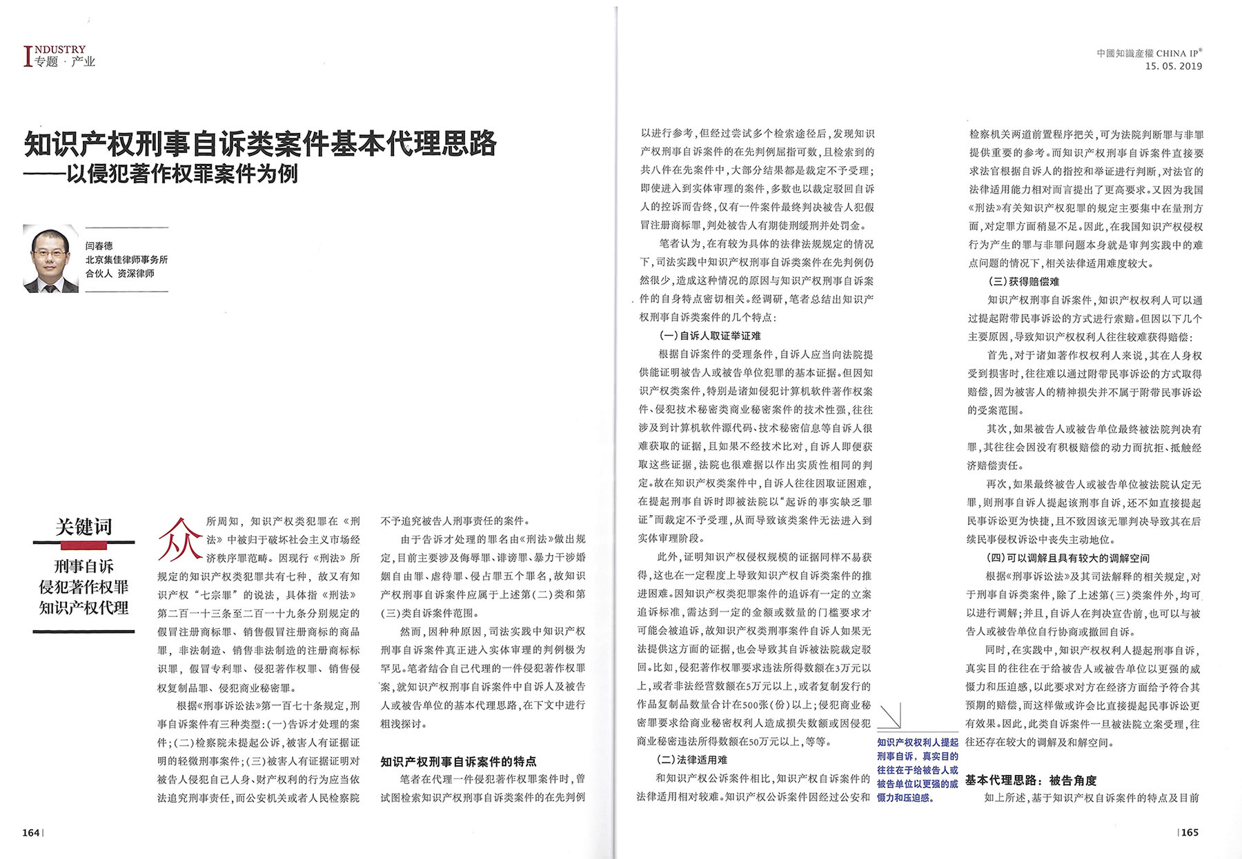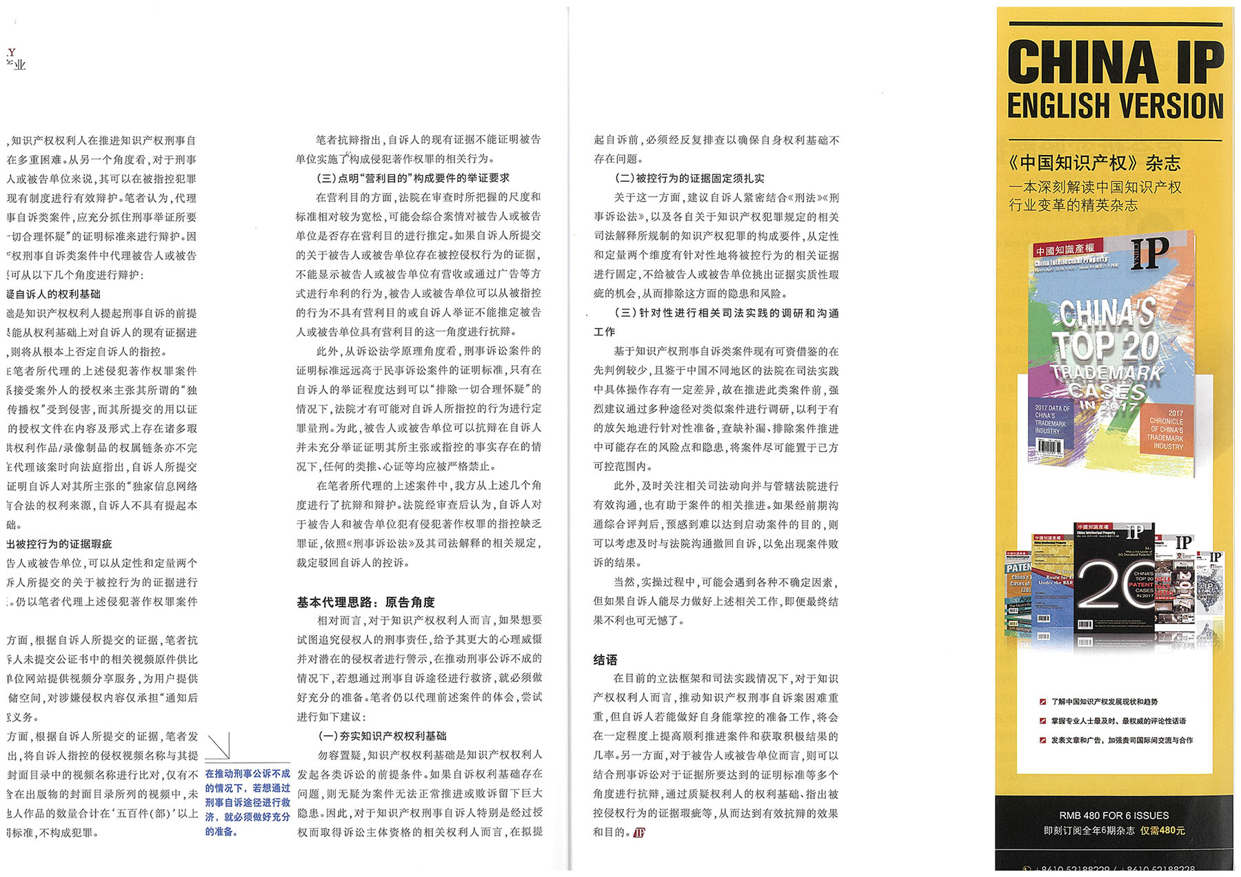 集佳文章《知識產權刑事自訴類案件基本代理思路—以侵犯著作權罪案件為例》在《中國知識產權》發(fā)表