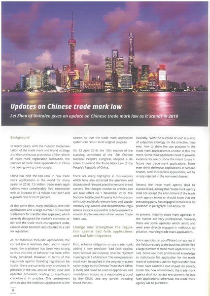 在年會上,趙雷律師與世界各國的知識產(chǎn)權(quán)界同仁探討了當(dāng)前熱點話題和商標(biāo)發(fā)展趨勢,同時也向參會代表分享了集佳近年來在國內(nèi)商標(biāo)領(lǐng)域及境外商標(biāo)實踐中取得的成績和獲得的經(jīng)驗,并與很多國家的代表建立了廣泛友好的業(yè)務(wù)聯(lián)系。會議期間,趙雷律師應(yīng)邀撰寫的文章《Updates on Chinese trade mark law》在年會??禘CTA Daily》發(fā)表,受到了業(yè)界同仁的好評。