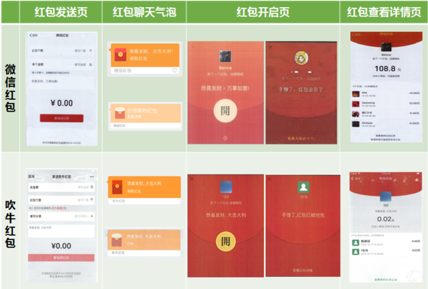 本案緣于被訴“吹?!避浖谔峁┑募t包收發(fā)服務(wù)過程中,在紅包發(fā)送接收全過程中使用的紅包發(fā)送頁、開啟頁、聊天氣泡、查看詳情頁等界面全面抄襲、模仿原告“微信紅包”相關(guān)界面。此外“吹?!避浖羞€提供與騰訊公司享有在先著作權(quán)的六幅“微信表情”一致的聊天表情,且其使用與“微信”軟件底部界面“聊天、通訊錄、發(fā)現(xiàn)、我”圖標(biāo)高度近似的圖標(biāo)。