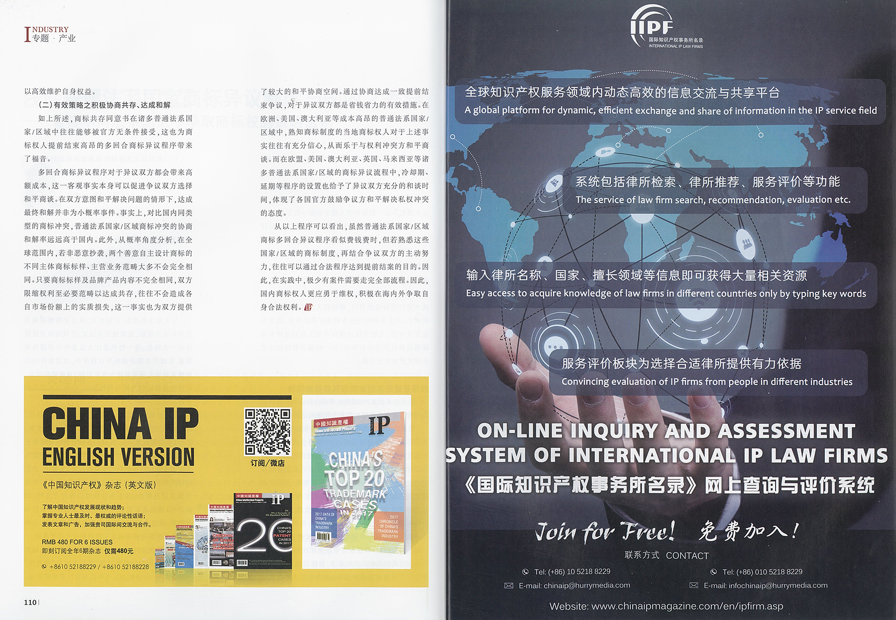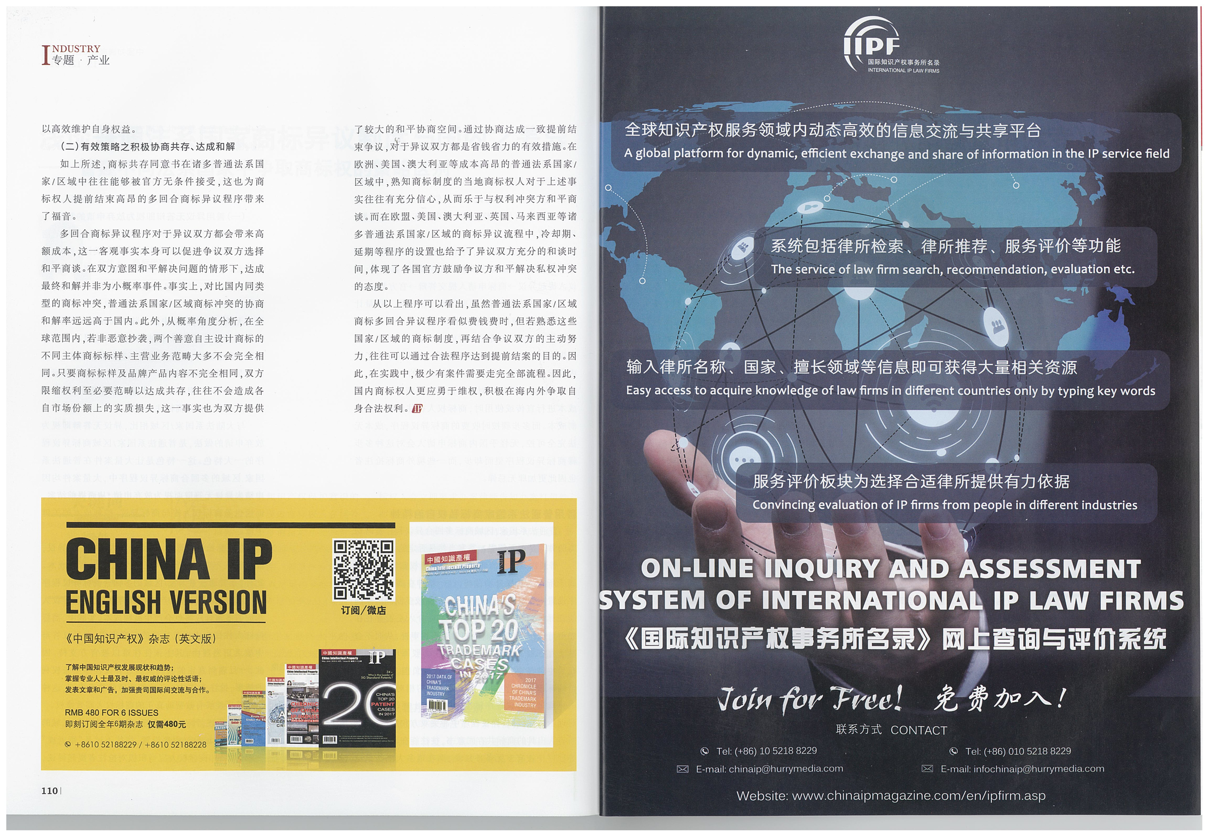 集佳文章《淺談普通法系國家商標(biāo)異議制度與國內(nèi)之差異——管窺不同法系國家中爭取商標(biāo)權(quán)的策略區(qū)別》在《中國知識產(chǎn)權(quán)》發(fā)表