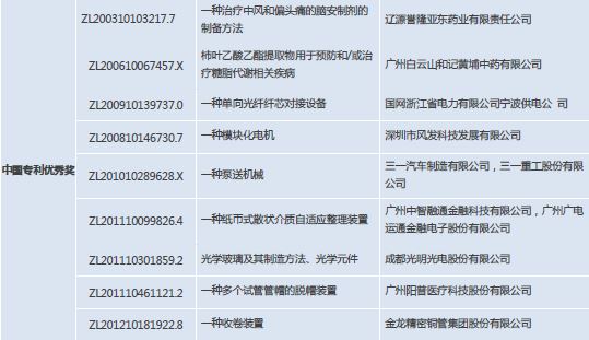 7月14日,國(guó)家知識(shí)產(chǎn)權(quán)局發(fā)布了第二十一屆中國(guó)專利獎(jiǎng)授獎(jiǎng)決定,從參與評(píng)比的2400余項(xiàng)專利中,最終評(píng)出30項(xiàng)發(fā)明、實(shí)用新型專利榮獲中國(guó)專利金獎(jiǎng),10項(xiàng)外觀設(shè)計(jì)專利榮獲中國(guó)外觀設(shè)計(jì)金獎(jiǎng),58項(xiàng)發(fā)明、實(shí)用新型專利中國(guó)專利銀獎(jiǎng),15項(xiàng)外觀設(shè)計(jì)專利中國(guó)外觀設(shè)計(jì)銀獎(jiǎng),696項(xiàng)發(fā)明、實(shí)用新型專利中國(guó)專利優(yōu)秀獎(jiǎng),60項(xiàng)外觀設(shè)計(jì)專利中國(guó)外觀設(shè)計(jì)優(yōu)秀獎(jiǎng)。