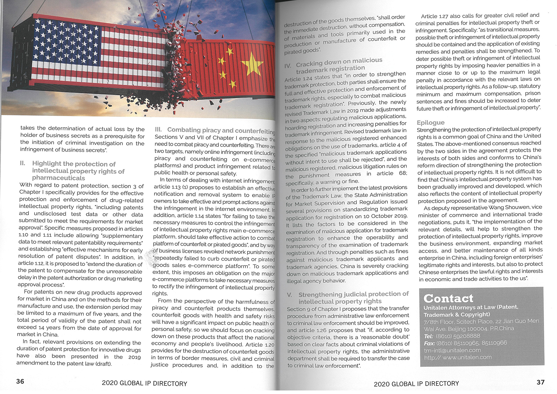 集佳合伙人趙雷律師文章《The impact on intellectual property of the first phase of the economic and trade agreement between China and the United States》在《2020 GLOBAL IP DIRECTORY》發(fā)表