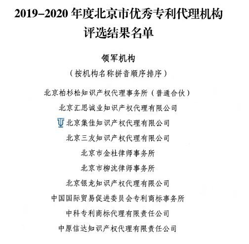 根據(jù)《北京市優(yōu)秀專利代理機(jī)構(gòu)和優(yōu)秀專利代理人評(píng)選辦法》的規(guī)定,北京市專利代理師協(xié)會(huì)組織開展了2019-2020年度北京市優(yōu)秀專利代理機(jī)構(gòu)和優(yōu)秀專利代理師評(píng)選工作,經(jīng)各機(jī)構(gòu)申報(bào)推薦、初審、專家評(píng)審、理事會(huì)審議以及名單公示等環(huán)節(jié),最終評(píng)選出20家北京市優(yōu)秀專利代理機(jī)構(gòu)和49名北京市優(yōu)秀專利代理師。