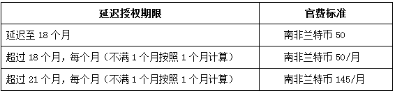 根據(jù)南非專利法實(shí)施細(xì)則第45條可知,專利申請人可以延長專利的授權(quán)周期至自申請?zhí)峤恢掌?8個(gè)月。根據(jù)南非專利法第40(C)條可知,說明理由(good cause)并繳納費(fèi)用,南非專利注冊處處長可以考慮再次延遲授權(quán)。