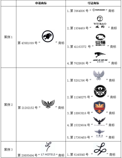 表格一的案例1~3作為圖形組合商標,均在駁回復審程序中克服了在先引證商標。然而表格二的案例1、2作為單獨的圖形商標,均未能在駁回復審程序中克服在先引證商標。特別是表格一的案例3(“ ”商標)與表格二的案例1(“