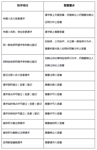 目前,日本專利涉及的行政程序中僅下列程序仍保留簽章要求,其他程序都不再需要提供簽章。對于日本境外的申請人來說,可以用簽字替代簽章,簽字和簽章的規(guī)定相同。