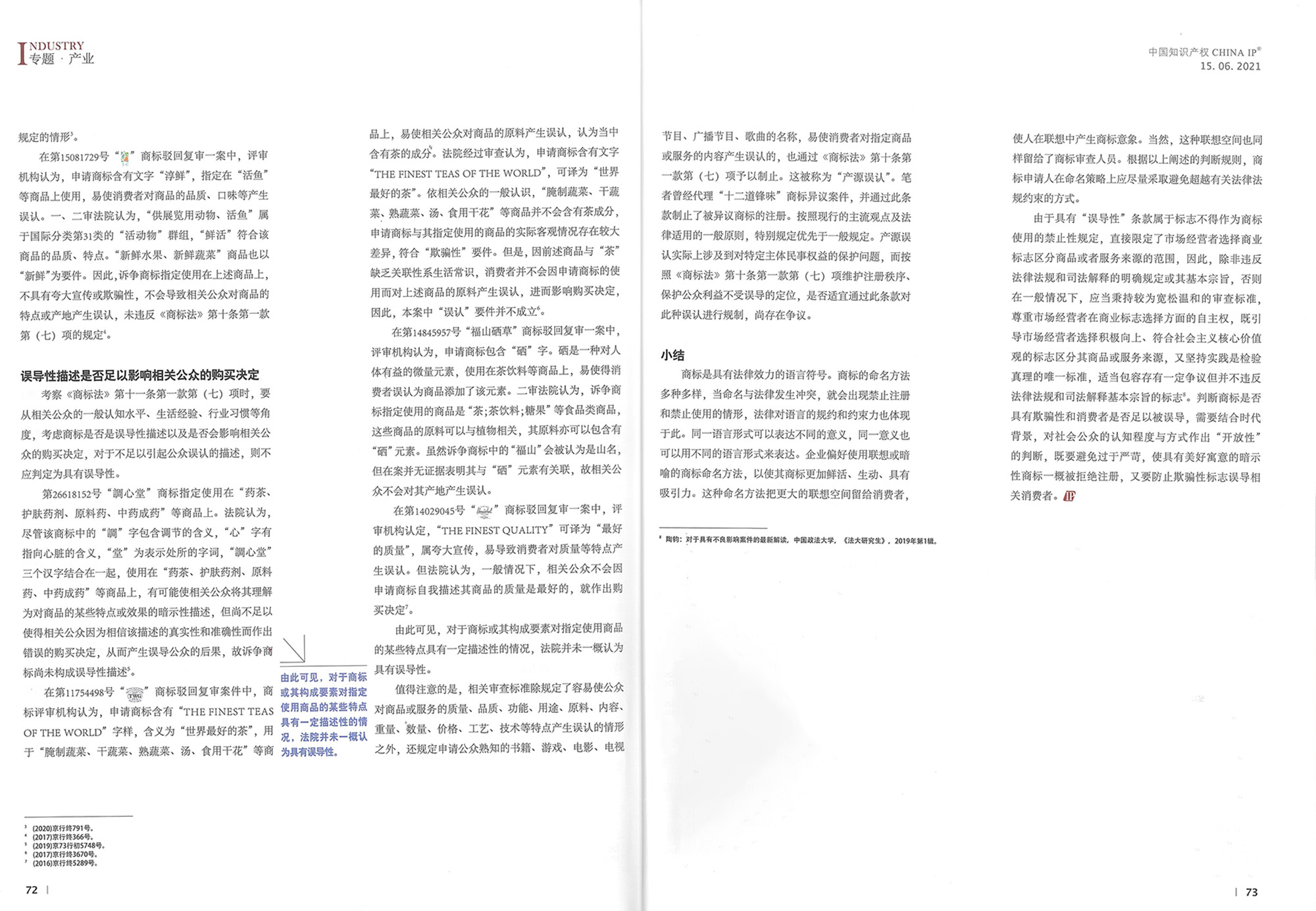 集佳文章《對(duì)于商標(biāo)“欺騙性”和“誤認(rèn)”條款的解讀——<商標(biāo)法>第十條第一款第(七)項(xiàng)適用淺析》