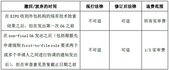 根據(jù)修訂后的專利法,退費(fèi)適用的時(shí)間范圍和退款的范圍如下所示: