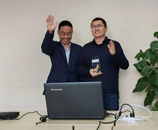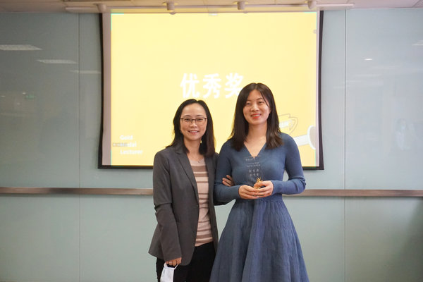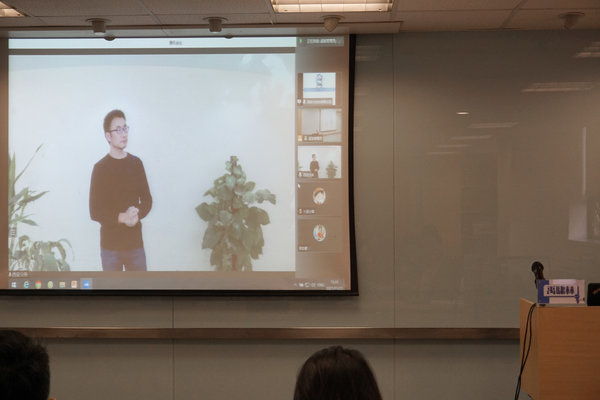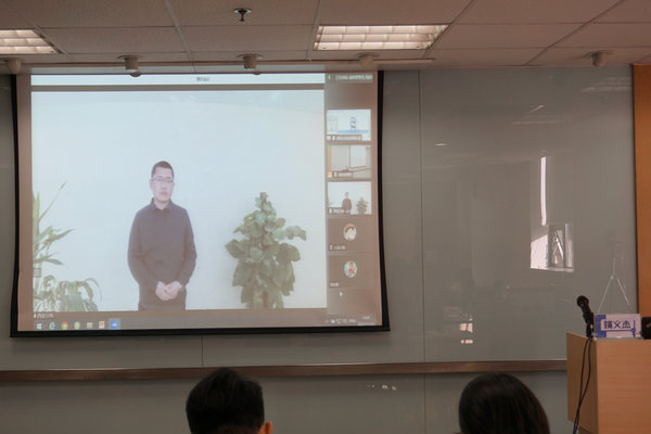 ▲ 楊林森老師為姚文杰頒獎(遠程會議連線) ▲丁永凡老師為蔣靜靜頒獎