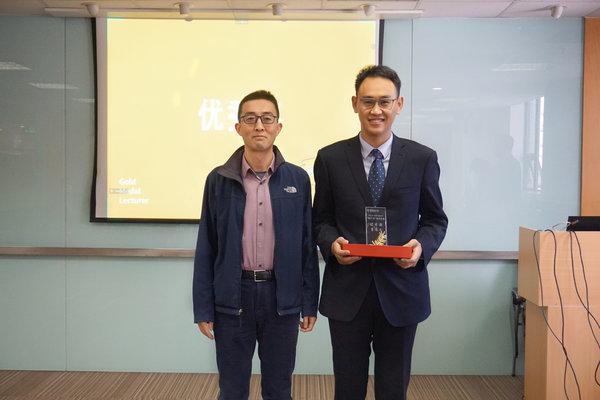 ▲張亞洲老師為鄭海洋頒獎 ▲彭鯤鵬老師為韓宏星頒獎
