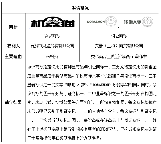 二、從“機器貓”無效宣告案看商標近似