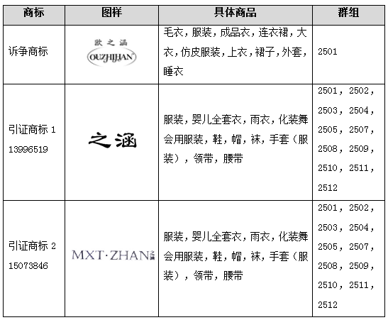 經(jīng)過審理,法院認定:訴爭商標(biāo)由中文“歐之涵”、字母“OUZHIHAN”及圖形組成,引證商標(biāo)一為中文“之涵”引證商標(biāo)二由中文“之涵”及字母“MXT.ZHAN”組成。訴爭商標(biāo)中文部分“歐之涵”完整包含引證商標(biāo)一及引證商標(biāo)二的中文部分“之涵”訴爭商標(biāo)與兩引證商標(biāo)在文字構(gòu)成、呼叫等方面相近?,F(xiàn)有證據(jù)僅能證明第三人成立于2011 年10 月,并無證據(jù)證明第三人自成立后對“歐之涵”字號的使用情況。在訴爭商標(biāo)與引證商標(biāo)核定使用商品類似、商標(biāo)標(biāo)識近似且引證商標(biāo)已經(jīng)在先實際使用的情況下,訴爭商標(biāo)與引證商標(biāo)共存容易使相關(guān)公眾對商品來源產(chǎn)生混淆誤認。故訴爭商標(biāo)與兩引證商標(biāo)已構(gòu)成商標(biāo)法第三十條所指的使用在同一種或類似商品上的近似商標(biāo)。被訴裁定對此認定有誤,本院予以糾正。
