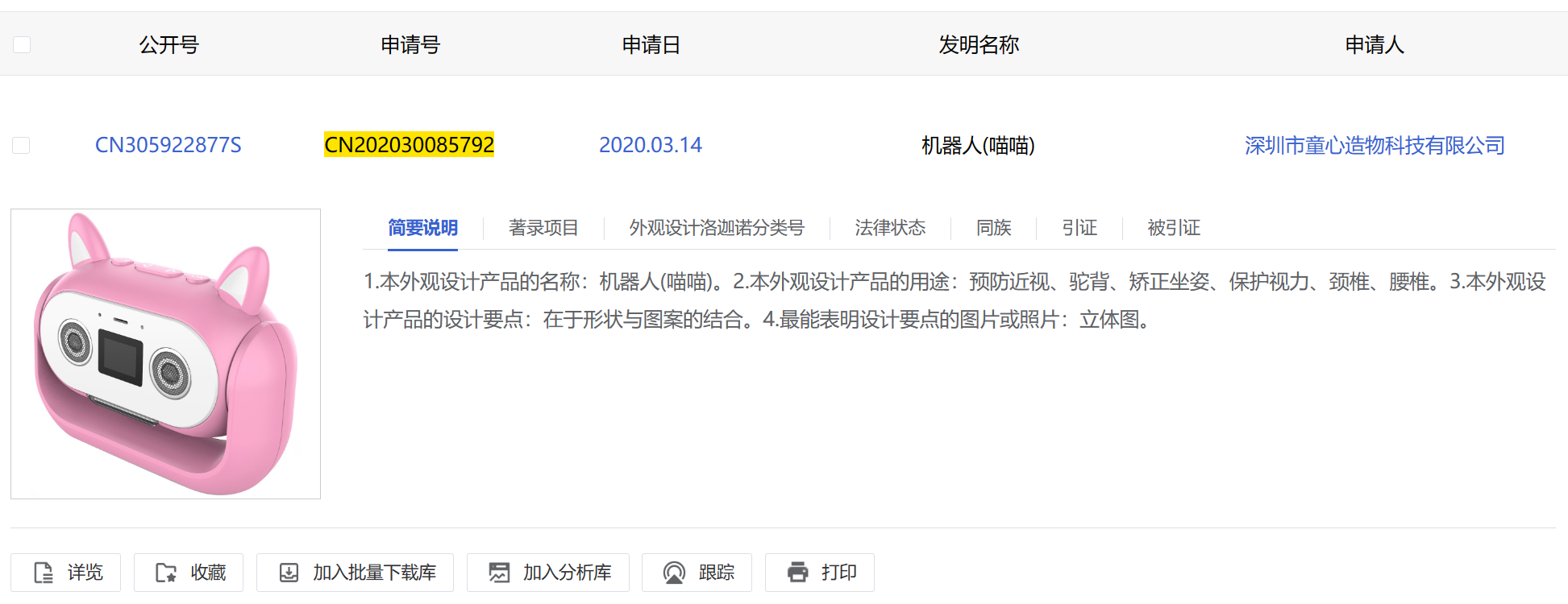 商標(biāo)局認(rèn)為:被異議商標(biāo)指定使用在第16類“紙;削鉛筆機(jī)(電或非電)”等商品上。異議人稱被異議人申請(qǐng)注冊(cè)被異議商標(biāo)侵犯其外觀設(shè)計(jì)專利權(quán),異議人提供的國家知識(shí)產(chǎn)權(quán)局出具的專利設(shè)計(jì)專利權(quán)評(píng)價(jià)報(bào)告顯示,異議人“機(jī)器人(喵喵)”專利號(hào)ZL202030085792.3,申請(qǐng)日為2020年3月14日,授權(quán)公告日為2020年7月14日,上述日期均早于被異議商標(biāo)申請(qǐng)日。被異議商標(biāo)“圖形”與異議人“機(jī)器人(喵喵)”外觀設(shè)計(jì)專利中顯示的主視圖主要構(gòu)圖要素,圖形整體視覺效果相近,已構(gòu)成近似,綜上所述,被異議人申請(qǐng)注冊(cè)被異議商標(biāo)侵犯其外觀設(shè)計(jì)專利權(quán),被異議商標(biāo)的申請(qǐng)注冊(cè)應(yīng)不予核準(zhǔn)。