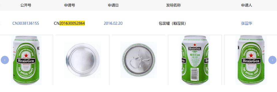被告張國華于2016年將與喜力公司商標(biāo)近似的圖案、文字作為啤酒商品的包裝物申請(qǐng)了201630052864.8號(hào)和201630052821.X號(hào)外觀設(shè)計(jì)專利權(quán)。