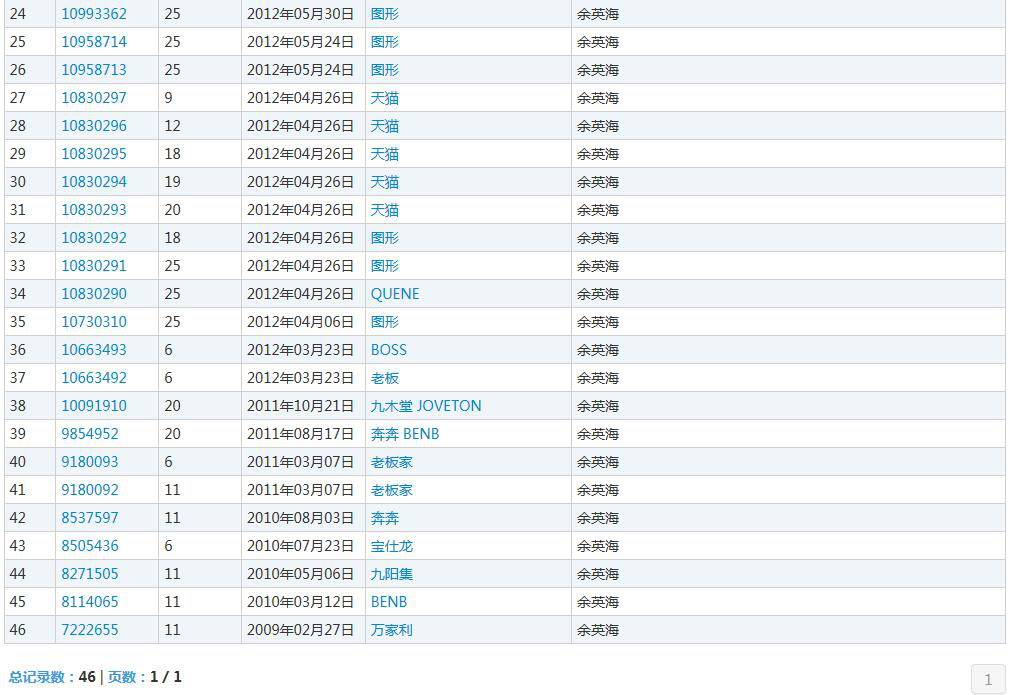 其次,針對訴爭商標(biāo)原注冊人余英海的惡意注冊行為,我方從以下幾個方面舉證證明。第一,訴爭商標(biāo)原注冊人余英海為自然人,自2009年2月27日至2017年11月1日,累計申請注冊了多達(dá)46件商標(biāo),其中18件商標(biāo)均已無效。其名下商標(biāo)涉及第6、7、9、11、12、18、19、20、24、25、35和39類群組,這些商標(biāo)的差異較大,遠(yuǎn)遠(yuǎn)超出了實際使用的范疇,其行為屬于典型的不以使用為目的注冊商標(biāo)。