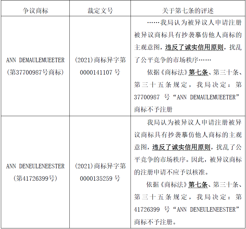 3.第41726399號“ANN DENEULENEESTER”商標(biāo)不予注冊的決定
