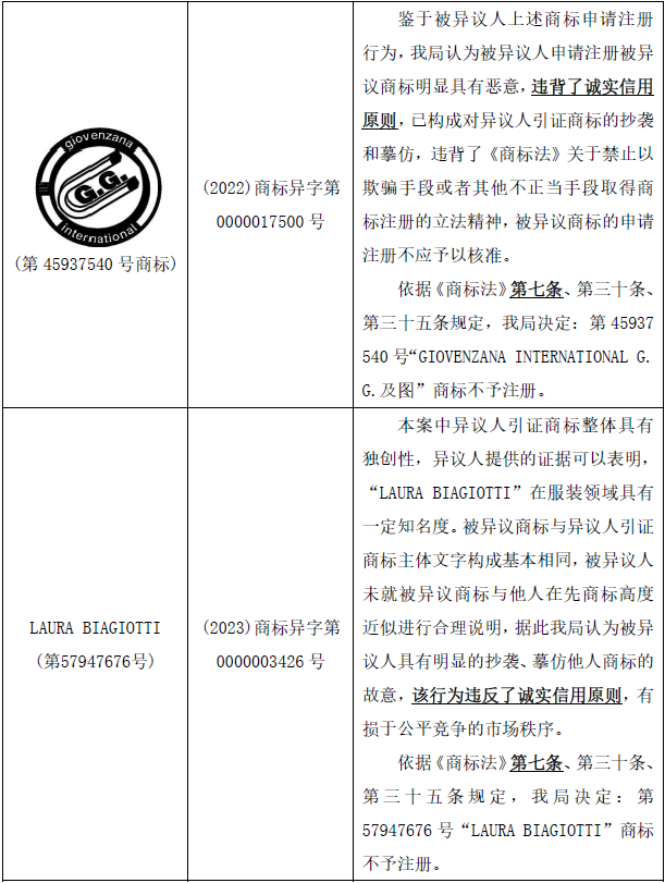 5.第57947676號“LAURA BIAGIOTTI”商標(biāo)不予注冊的決定