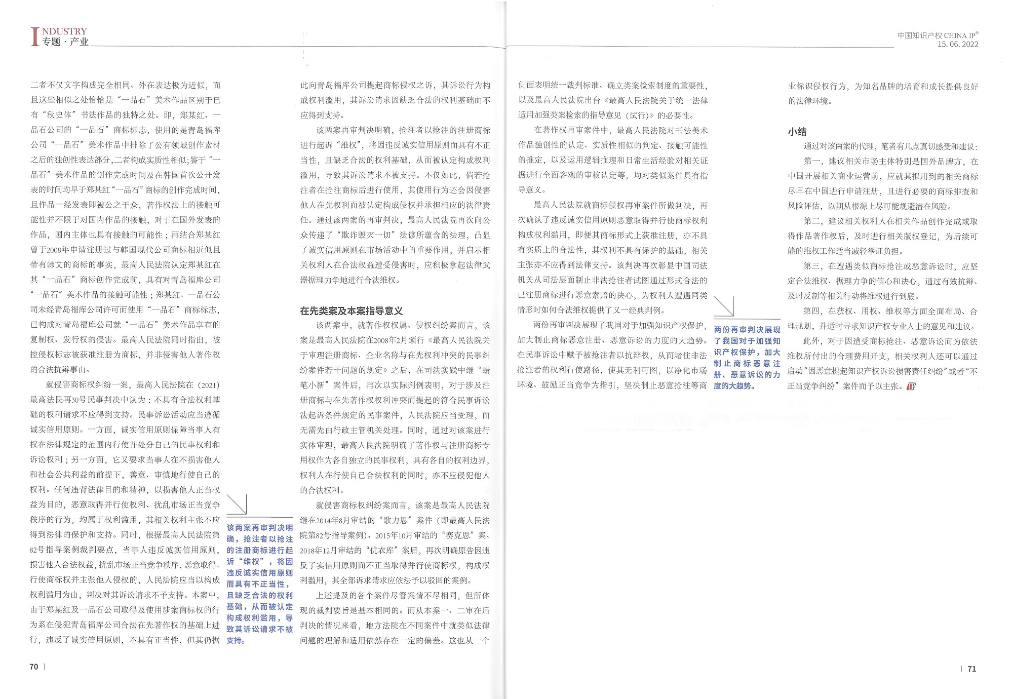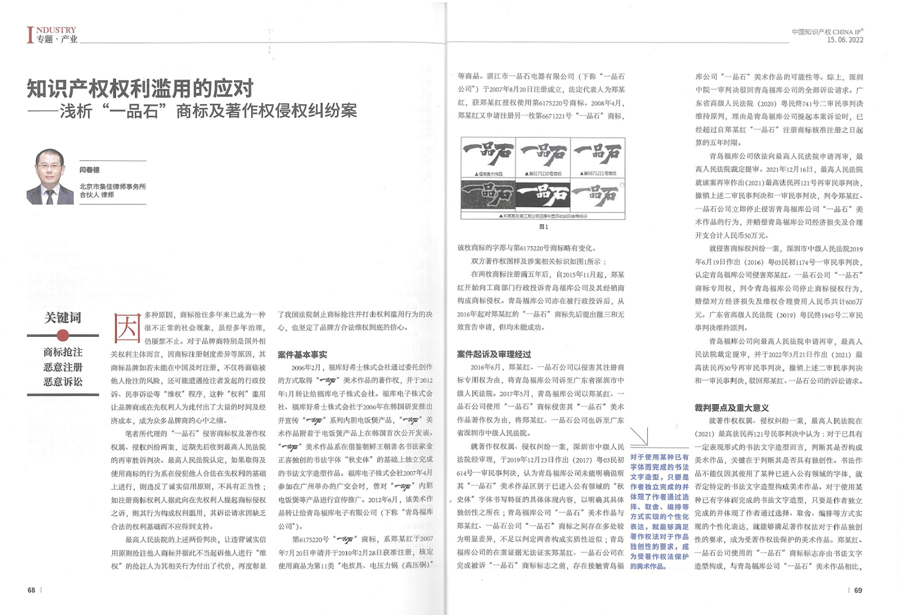 集佳文章《知識(shí)產(chǎn)權(quán)權(quán)利濫用的應(yīng)對(duì)——淺析“一品石”商標(biāo)及著作權(quán)侵權(quán)糾紛案》在《中國(guó)知識(shí)產(chǎn)權(quán)》發(fā)表