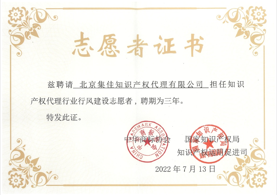 行風(fēng)建設(shè)年活動(dòng)由國家知識(shí)產(chǎn)權(quán)局知識(shí)產(chǎn)權(quán)運(yùn)用促進(jìn)司指導(dǎo),中華全國專利代理師協(xié)會(huì)和中華商標(biāo)協(xié)會(huì)聯(lián)合舉辦,是深入貫徹落實(shí)知識(shí)產(chǎn)權(quán)強(qiáng)國建設(shè)綱要和“十四五”知識(shí)產(chǎn)權(quán)保護(hù)和運(yùn)用規(guī)劃的部署要求,著力推進(jìn)知識(shí)產(chǎn)權(quán)代理服務(wù)業(yè)高質(zhì)量發(fā)展的一項(xiàng)重要舉措。在本次活動(dòng)中,集佳憑借優(yōu)質(zhì)、專業(yè)的知識(shí)產(chǎn)權(quán)代理服務(wù),獲聘擔(dān)任知識(shí)產(chǎn)權(quán)代理行業(yè)行風(fēng)建設(shè)志愿者。作為行風(fēng)建設(shè)志愿者,集佳積極發(fā)揮表率作用,嚴(yán)格要求自己,在知識(shí)產(chǎn)權(quán)代理工作中堅(jiān)守職業(yè)道德,恪守工作職責(zé),持續(xù)引導(dǎo)行業(yè)健康發(fā)展。