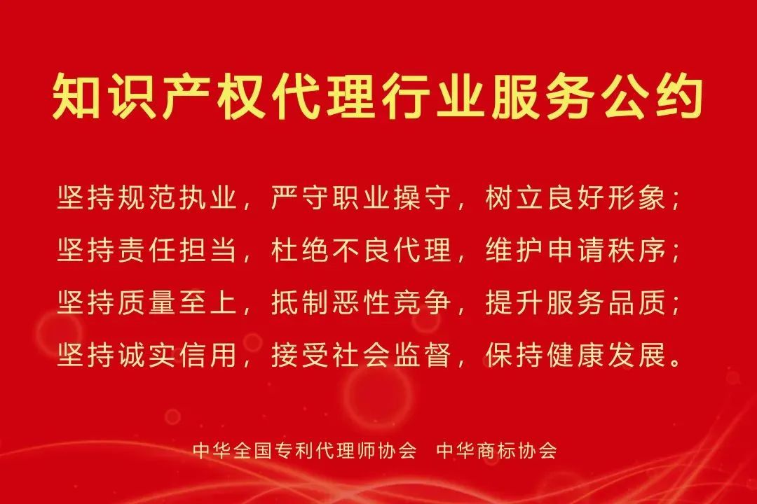 弘揚(yáng)行業(yè)正氣、提升服務(wù)質(zhì)量、加強(qiáng)行風(fēng)建設(shè)是一項(xiàng)長期性、持久性的工作,集佳知識(shí)產(chǎn)權(quán)將在工作中始終用心踐行《公約》的各項(xiàng)要求,強(qiáng)化能力、提升質(zhì)量,明確規(guī)矩、樹立導(dǎo)向,弘揚(yáng)正氣、樹立新風(fēng),與業(yè)內(nèi)各相關(guān)方形成合力,持續(xù)引導(dǎo)行業(yè)自律,全面推進(jìn)行業(yè)高質(zhì)量發(fā)展,為知識(shí)產(chǎn)權(quán)強(qiáng)國的建設(shè)作出自己的貢獻(xiàn)。