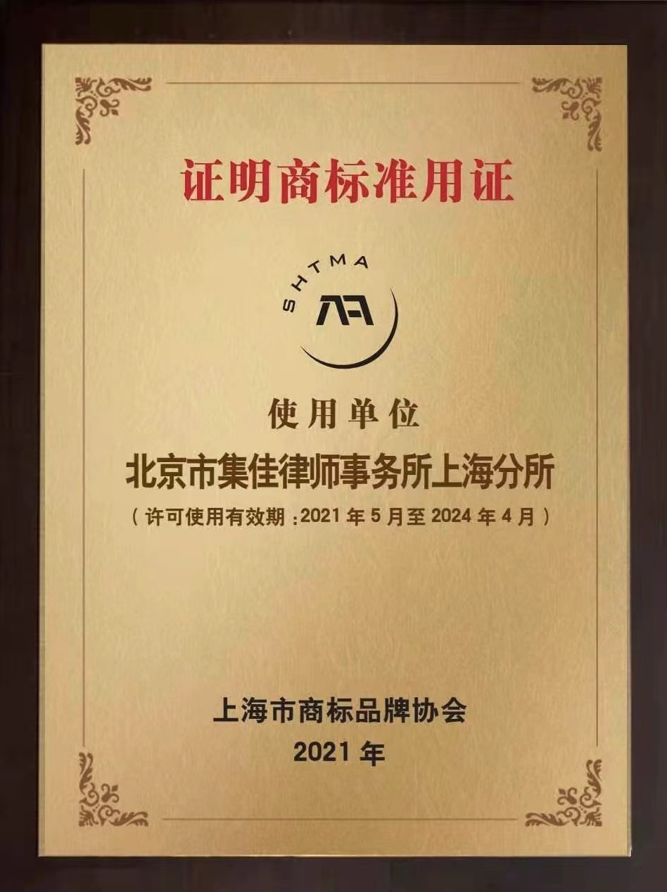 為規(guī)范商標(biāo)代理行業(yè)管理,解決商標(biāo)代理市場(chǎng)存在的一系列不規(guī)范行為,協(xié)會(huì)依托市場(chǎng)監(jiān)管部門,制定了上海商標(biāo)代理行業(yè)服務(wù)規(guī)范的地方標(biāo)準(zhǔn),旨在凈化上海商標(biāo)代理市場(chǎng)的環(huán)境,促進(jìn)上海商標(biāo)代理機(jī)構(gòu)不斷提升誠(chéng)信度和美譽(yù)度。達(dá)到標(biāo)準(zhǔn)的商標(biāo)代理機(jī)構(gòu)通過(guò)許可,方可獲得《證明商標(biāo)準(zhǔn)用證》。集佳上海分所作為達(dá)標(biāo)代理機(jī)構(gòu)之一,此前已獲得《證明商標(biāo)準(zhǔn)用證》。