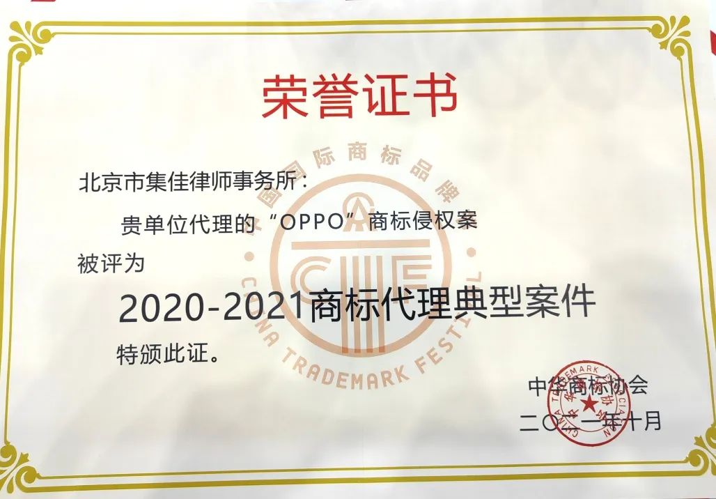6月17日,第十三屆中國國際商標(biāo)品牌節(jié)正式拉開帷幕,各項(xiàng)活動(dòng)火熱進(jìn)行。在“商標(biāo)典型案例評(píng)析論壇”上,集佳律師事務(wù)所代理的“第33類‘王者榮耀’無效宣告行政訴訟案”和“OPPO侵權(quán)案”因其體現(xiàn)出的創(chuàng)新性、實(shí)效性、典型性和影響力,在眾多案例中脫穎而出,雙雙入選“2020-2021商標(biāo)代理典型案件”。