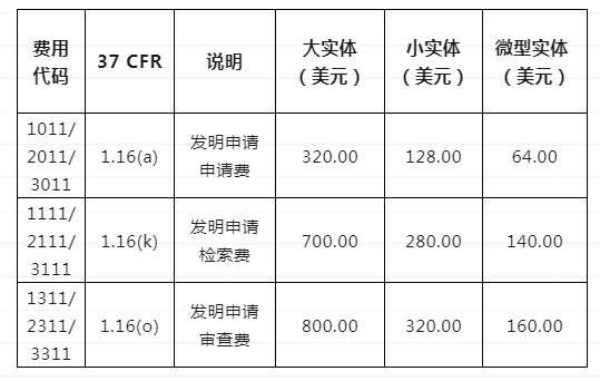 美國發(fā)明官費(fèi)如下: