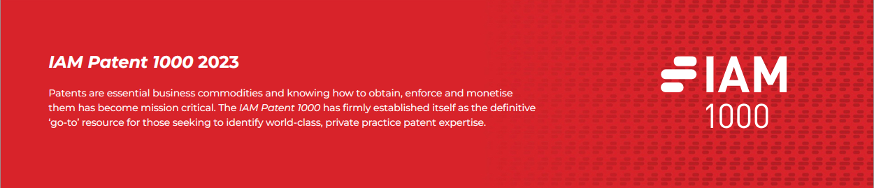 近期,國際權(quán)威知識產(chǎn)權(quán)媒體IAM(Intellectual Asset Management)公布了2023年度“IAM全球?qū)@?000強”(IAM PATENT 1000)評選結(jié)果,集佳憑借在專利領(lǐng)域的杰出表現(xiàn)及客戶的廣泛認(rèn)可,連續(xù)9年入選“專利確權(quán)”和“專利訴訟”兩大領(lǐng)域的年度推薦事務(wù)所名錄。同時,集佳合伙人李德山副所長獲評“專利訴訟”和“專利確權(quán)”兩大領(lǐng)域杰出個人,合伙人李洋副所長和潘煒博士榮登“專利確權(quán)”領(lǐng)域杰出個人推薦榜單。