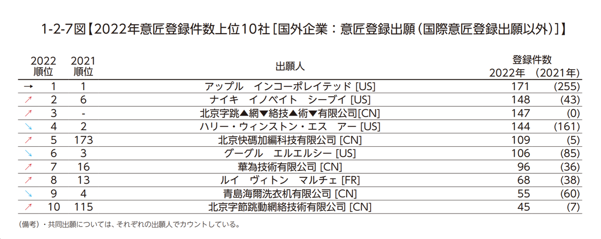前10大日本境外企業(yè)外觀設(shè)計(jì)注冊量: