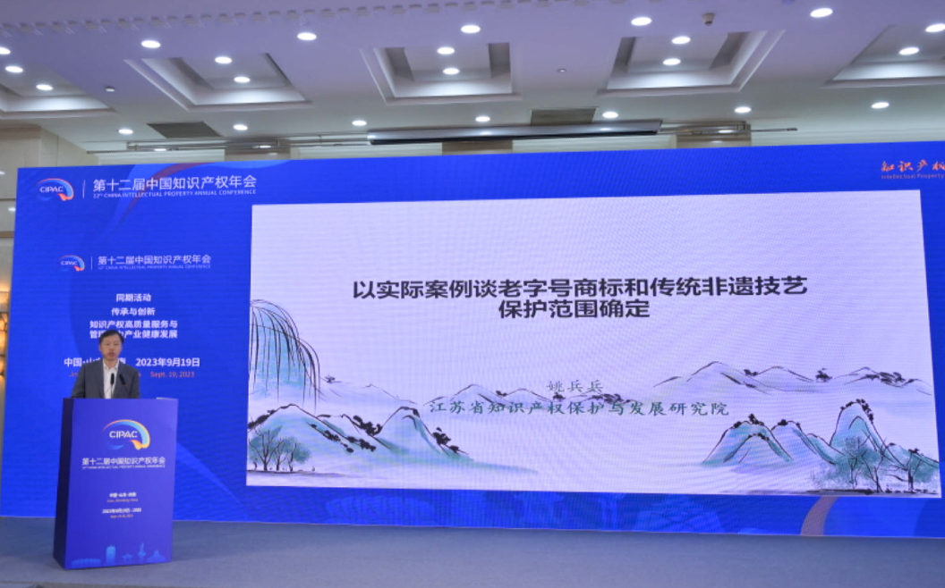江蘇省知識(shí)產(chǎn)權(quán)保護(hù)與發(fā)展研究院姚兵兵院長(zhǎng)發(fā)表了題為《以實(shí)際案例談老字號(hào)商標(biāo)和傳統(tǒng)非遺技藝保護(hù)范圍確定》的主題演講,通過(guò)對(duì)“蔣有記”案、“福壽三多絨花”案的解讀,梳理了老字號(hào)和非物質(zhì)文化遺產(chǎn)保護(hù)范圍的司法動(dòng)向。