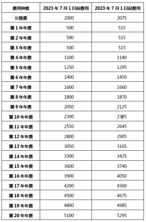 *續(xù)展費(fèi)的調(diào)整適用于2023年9月30日之后到期的費(fèi)用。這意味著在2023年9月30日之前到期的續(xù)展費(fèi)仍按2023年7月1日之前的標(biāo)準(zhǔn)繳納。如果逾期支付費(fèi)用,將收取20%的滯納金。