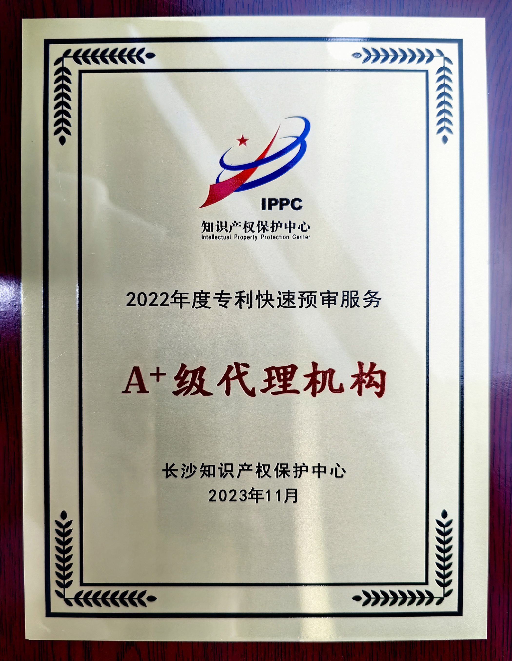 為了更好地激勵先進,推動長沙市專利預審工作不斷優(yōu)化升級,近期,長沙知識產權保護中心對備案主體和專利代理機構分別開展了分類分級評價工作。集佳憑借優(yōu)質的專利代理服務,獲評為“A+級專利代理機構”,并在11月15日長沙知識產權保護中心舉辦的“2023企業(yè)知識產權精英人才訓練營”開班儀式上獲頒榮譽獎牌。