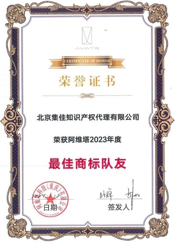 近日,集佳優(yōu)質(zhì)服務(wù)再次喜獲客戶點贊——阿維塔科技(重慶)有限公司(以下簡稱“阿維塔”)授予集佳2023年度“最佳商標隊友”榮譽稱號。