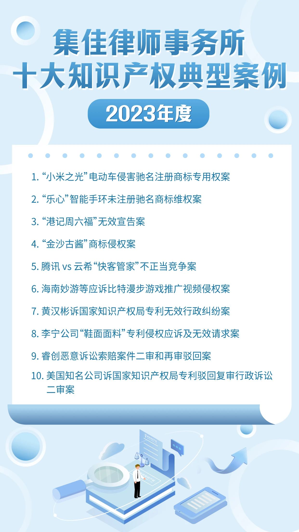 作為迎接4.26世界知識產(chǎn)權(quán)日的獻禮之一,北京市集佳律師事務所已連續(xù)十年開展十大知識產(chǎn)權(quán)典型案例的評選活動,其意義不僅在于展現(xiàn)集佳律師團隊的專業(yè)能力和水準,更在于傳遞集佳全方位服務客戶的理念。在第24個世界知識產(chǎn)權(quán)日來臨之際,集佳律所從2023年度代理的眾多知識產(chǎn)權(quán)案件中篩選出具有代表性的十大案例,與各界同仁分享: