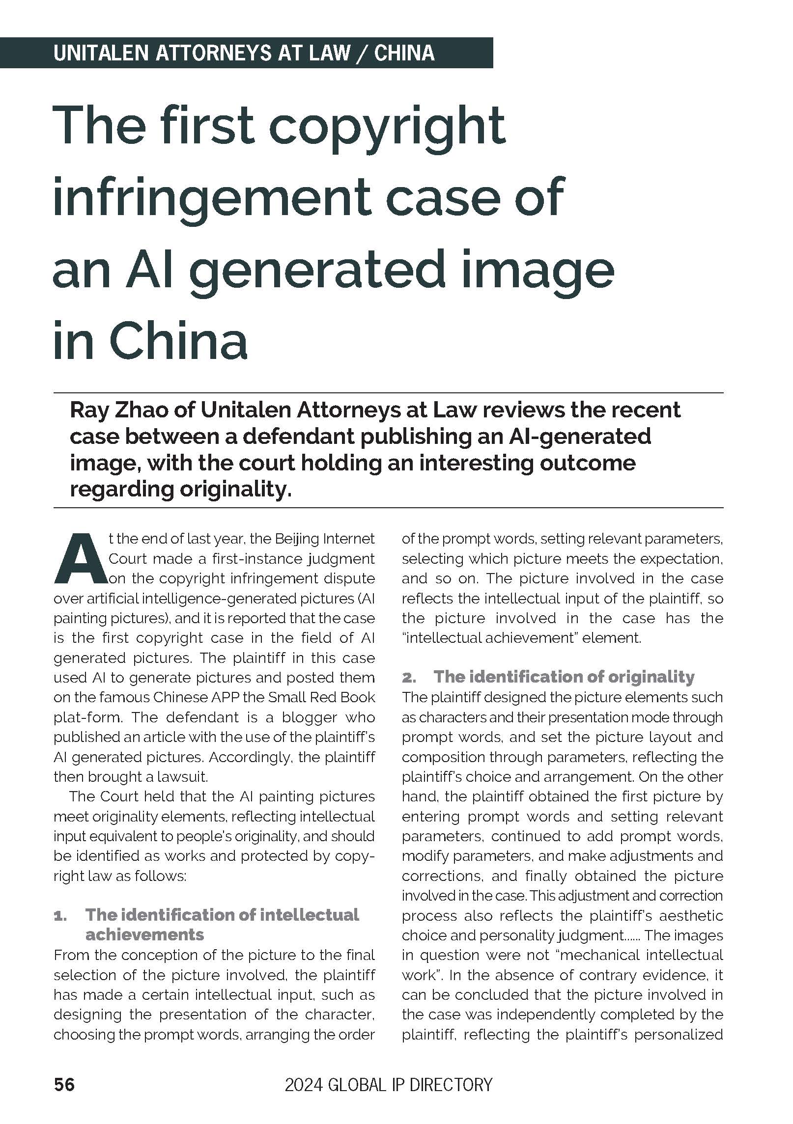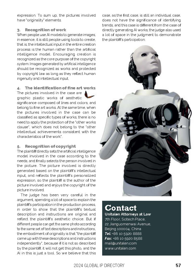 集佳文章《The first copyright infringement case of an AI generated image in China 》在《The Global IP Directory 2024》發(fā)表