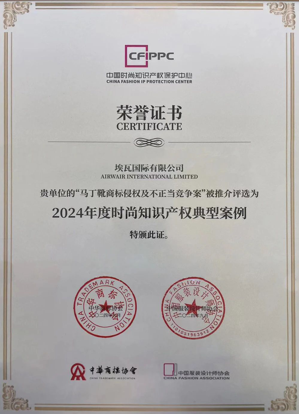集佳代理埃瓦國際有限公司(AIRWAIR INTERNATIONAL LIMITED)的“馬丁靴商標侵權(quán)及不正當競爭案”榮登十大案例榜單。本案涉及與時尚品鞋履有關(guān)的商標侵權(quán)及不正當競爭行為的認定問題。在商標侵權(quán)行為的認定中,商標權(quán)人一方面積極舉證證明“馬丁靴”并非商品的通用名稱,另一方反駁被控侵權(quán)人證明“馬丁靴”已經(jīng)構(gòu)成商品通用名稱證據(jù)的可采性,在證明商標有效性的前提下確定被控侵權(quán)行為的成立,該案對通用名稱的認定具有示范意義。另外,本案還在如何判定廣告宣傳表述構(gòu)成虛假宣傳和商譽詆毀方面具有典型意義。