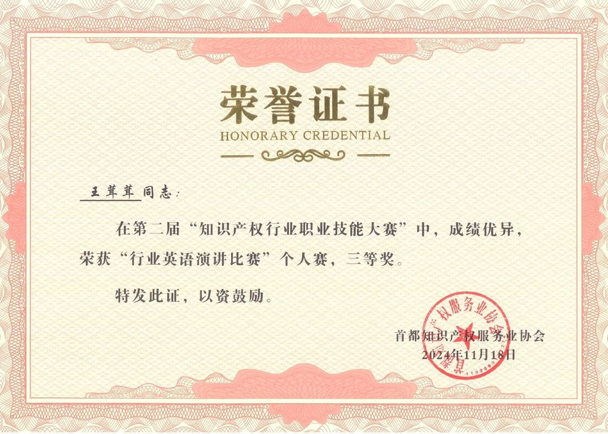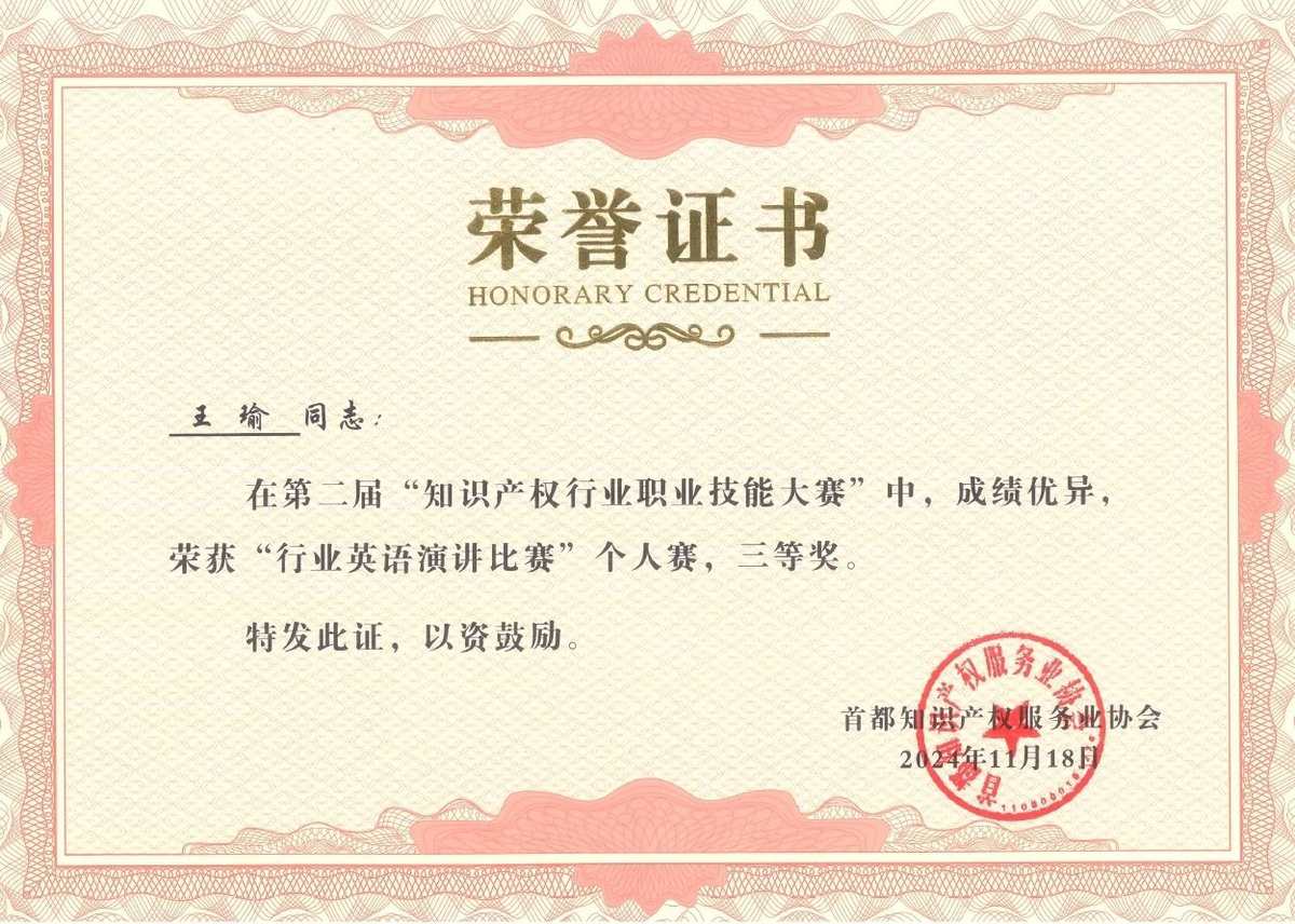 本屆大賽以“激揚(yáng)創(chuàng)新夢(mèng)想 鑄就精彩人生”為主題,秉持公平公正的原則,以展現(xiàn)知識(shí)產(chǎn)權(quán)人的職業(yè)風(fēng)采、提升知識(shí)產(chǎn)權(quán)從業(yè)人員專業(yè)水平、引領(lǐng)知識(shí)產(chǎn)權(quán)行業(yè)向高質(zhì)量發(fā)展為目標(biāo),為行業(yè)青年人才提供了交流、展示、歷練的平臺(tái)?!靶袠I(yè)英語(yǔ)演講比賽”檢驗(yàn)從業(yè)人員專業(yè)英文口語(yǔ)表達(dá)能力;“商標(biāo)綜合技能比賽”檢驗(yàn)從業(yè)人員商標(biāo)檢索、制定商標(biāo)確權(quán)策略,撰寫確權(quán)方案的能力。比賽中,集佳參賽選手通過(guò)精彩的演講與答辯,展現(xiàn)了出色的專業(yè)能力與良好的團(tuán)隊(duì)協(xié)作精神,受到評(píng)委們的一致好評(píng)。