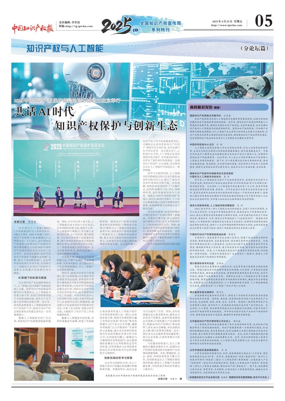 4月21-22日,由中國(guó)知識(shí)產(chǎn)權(quán)報(bào)社和世界知識(shí)產(chǎn)權(quán)組織(WIPO)中國(guó)辦事處聯(lián)合主辦的“2025中國(guó)知識(shí)產(chǎn)權(quán)保護(hù)高層論壇”在京成功舉辦。論壇以“機(jī)遇與挑戰(zhàn):人工智能背景下的知識(shí)產(chǎn)權(quán)治理”為主題,吸引了來自國(guó)家部委、高校和科研機(jī)構(gòu)、企業(yè)和知識(shí)產(chǎn)權(quán)服務(wù)機(jī)構(gòu)的代表參加。國(guó)家知識(shí)產(chǎn)權(quán)局局長(zhǎng)申長(zhǎng)雨、最高人民檢察院副檢察長(zhǎng)宮鳴、北京市副市長(zhǎng)孫碩,世界知識(shí)產(chǎn)權(quán)組織助理總干事夏目健一郎出席論壇開幕式并致辭。開幕式由國(guó)家知識(shí)產(chǎn)權(quán)局副局長(zhǎng)胡文輝主持。