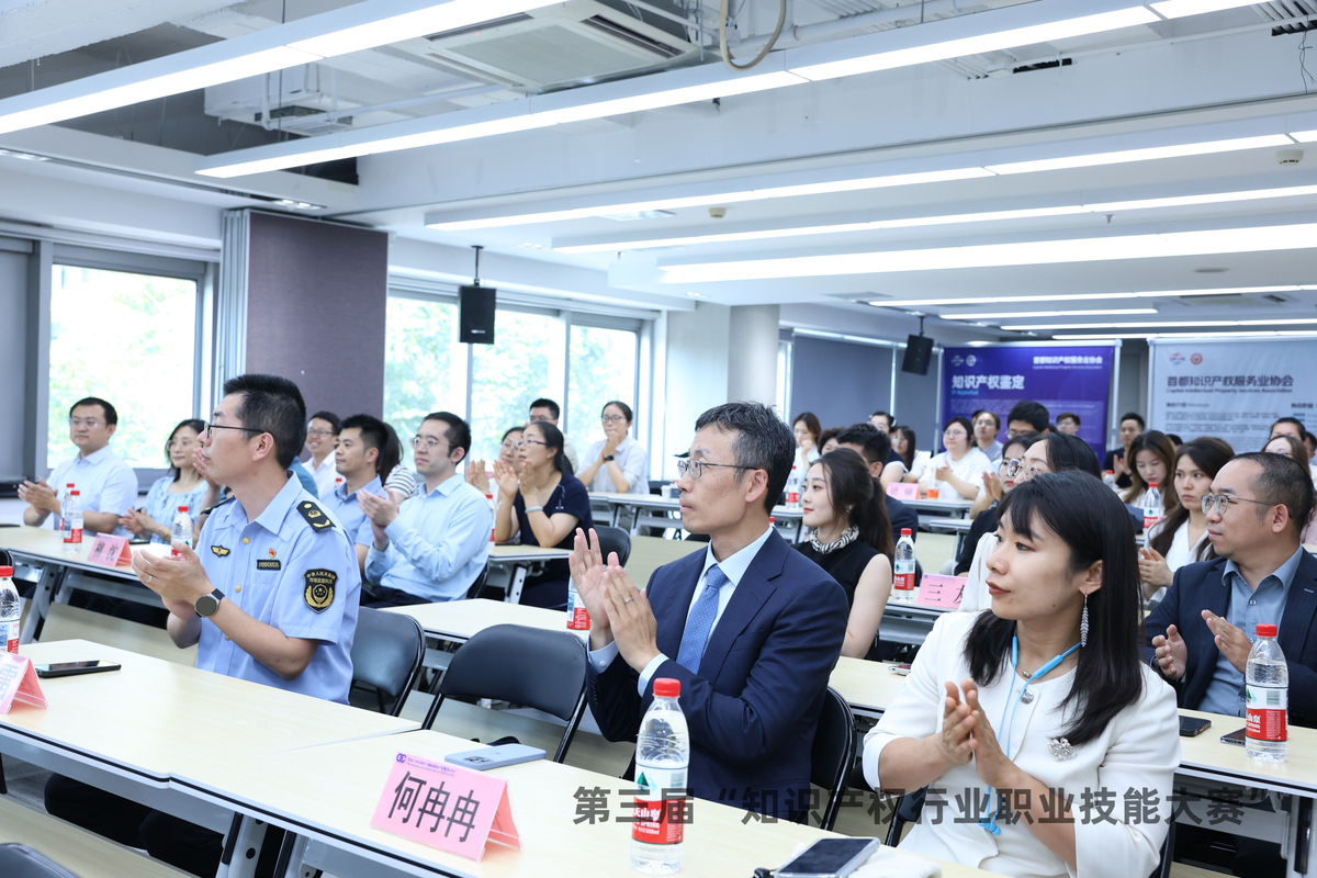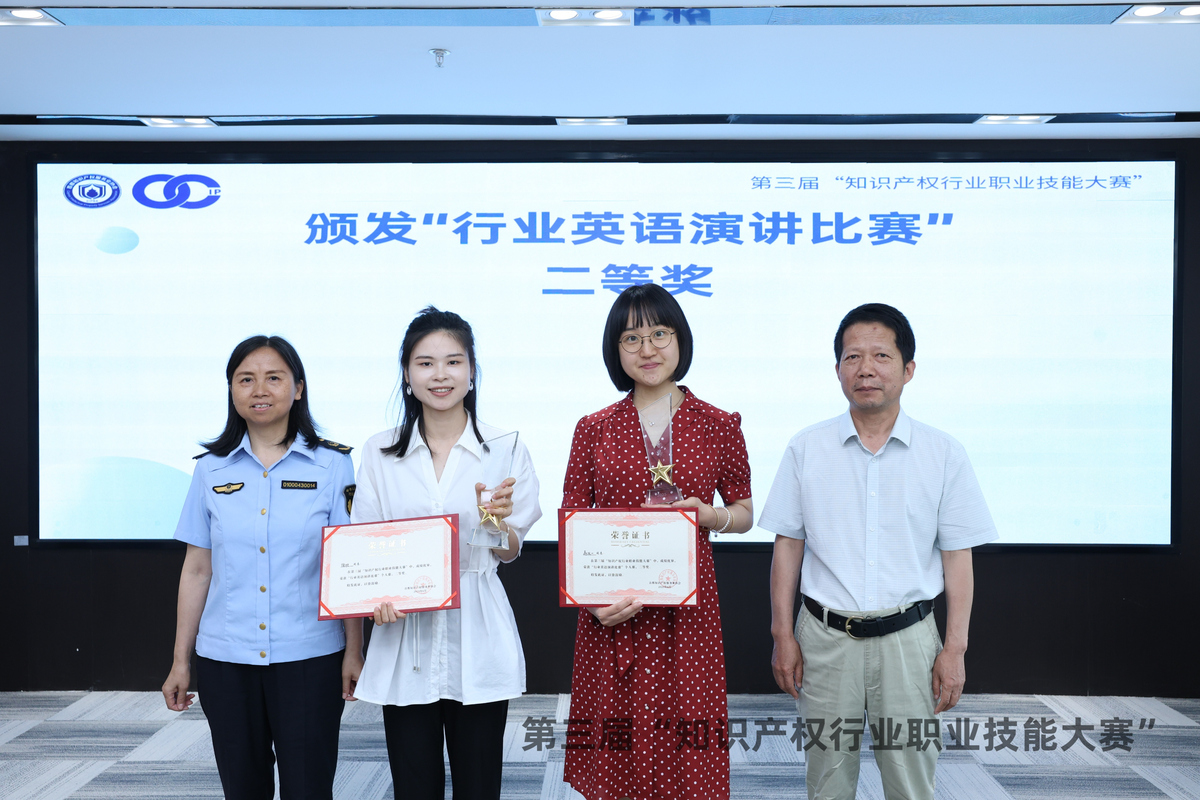 中國(guó)知識(shí)產(chǎn)權(quán)研究會(huì)副理事長(zhǎng)甘紹寧,北京市知識(shí)產(chǎn)權(quán)局二級(jí)巡視員黃建軍,海淀區(qū)市場(chǎng)監(jiān)督管理局副局長(zhǎng)、區(qū)知識(shí)產(chǎn)權(quán)局局長(zhǎng)張芳英,中國(guó)知識(shí)產(chǎn)權(quán)研究會(huì)綜合部部長(zhǎng)張健佳,首都知識(shí)產(chǎn)權(quán)服務(wù)業(yè)協(xié)會(huì)會(huì)長(zhǎng)白剛,榮譽(yù)會(huì)長(zhǎng)李強(qiáng)出席頒獎(jiǎng)典禮,為獲獎(jiǎng)選手頒發(fā)榮譽(yù)證書和獎(jiǎng)杯。