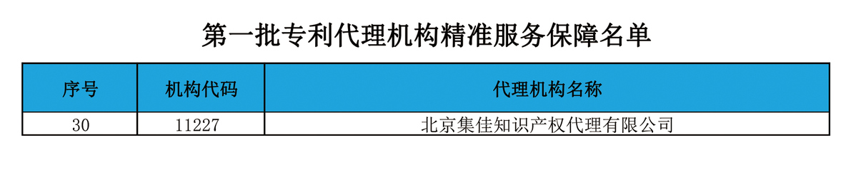 近日,中華全國專利代理師協(xié)會發(fā)布第一批專利代理機(jī)構(gòu)精準(zhǔn)服務(wù)保障名單,北京集佳知識產(chǎn)權(quán)代理有限公司憑借穩(wěn)健的綜合實(shí)力、優(yōu)質(zhì)的專業(yè)服務(wù)和良好的業(yè)界聲譽(yù),成為首批入選的知識產(chǎn)權(quán)服務(wù)機(jī)構(gòu)。